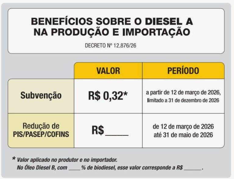O governo do Brasil oficializou, nesta terça-feira (17/03), novas diretrizes para garantir que a isenção de impostos sobre o diesel. Buscando deter os impactos da guerra no Oriente Médio sobre o preço do combustível e evitar o encarecimento do transporte de itens essenciais, o presidente Luiz Inácio Lula da Silva (PT) determinou, via medida provisória e decreto, a isenção de tributos e uma subvenção de R$ 0,32 por litro aos produtores.